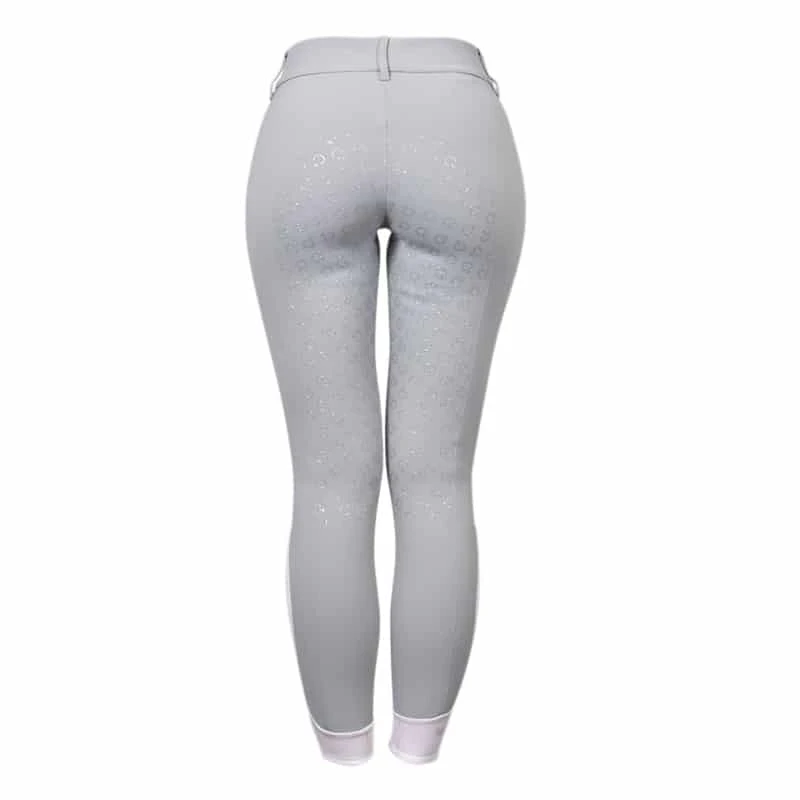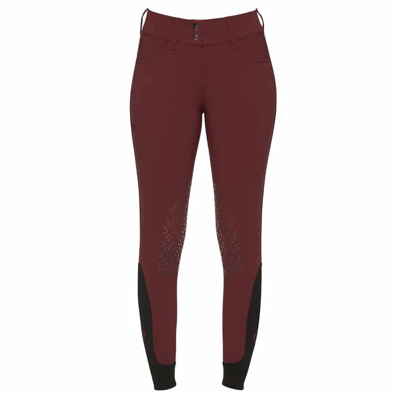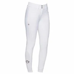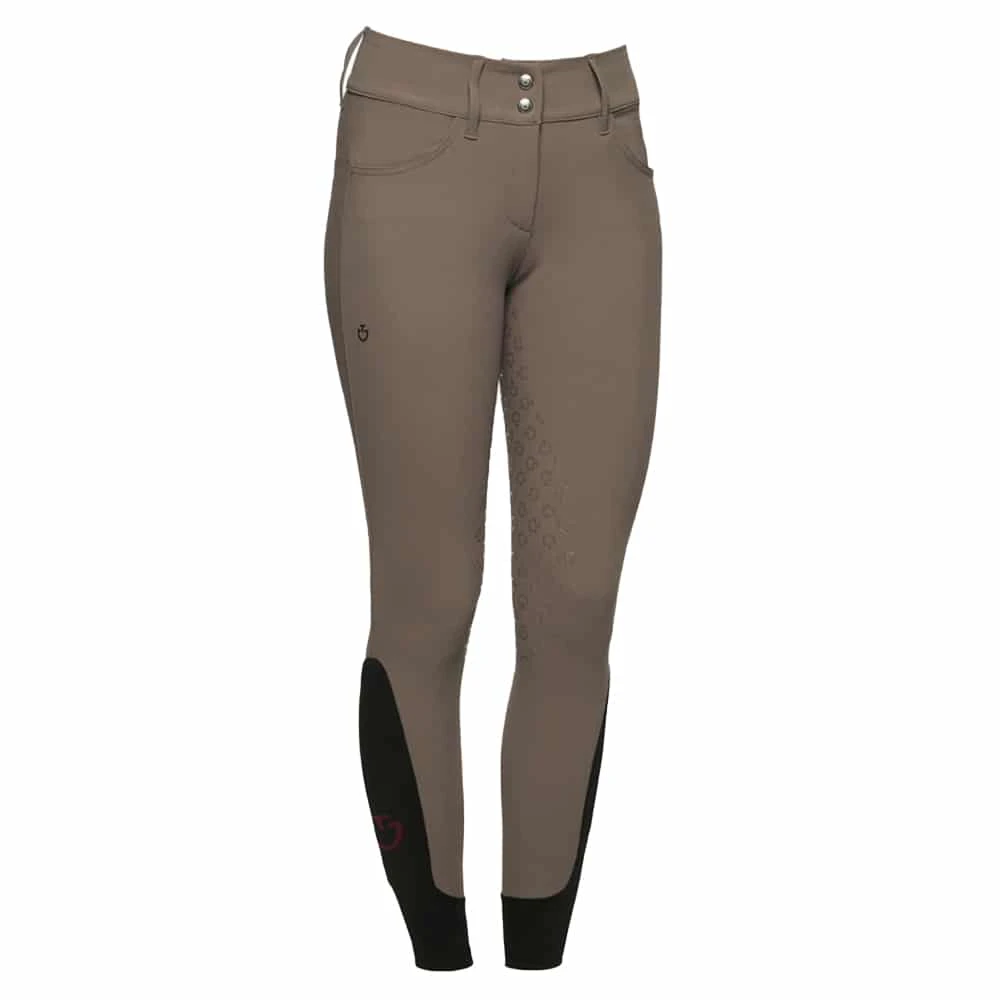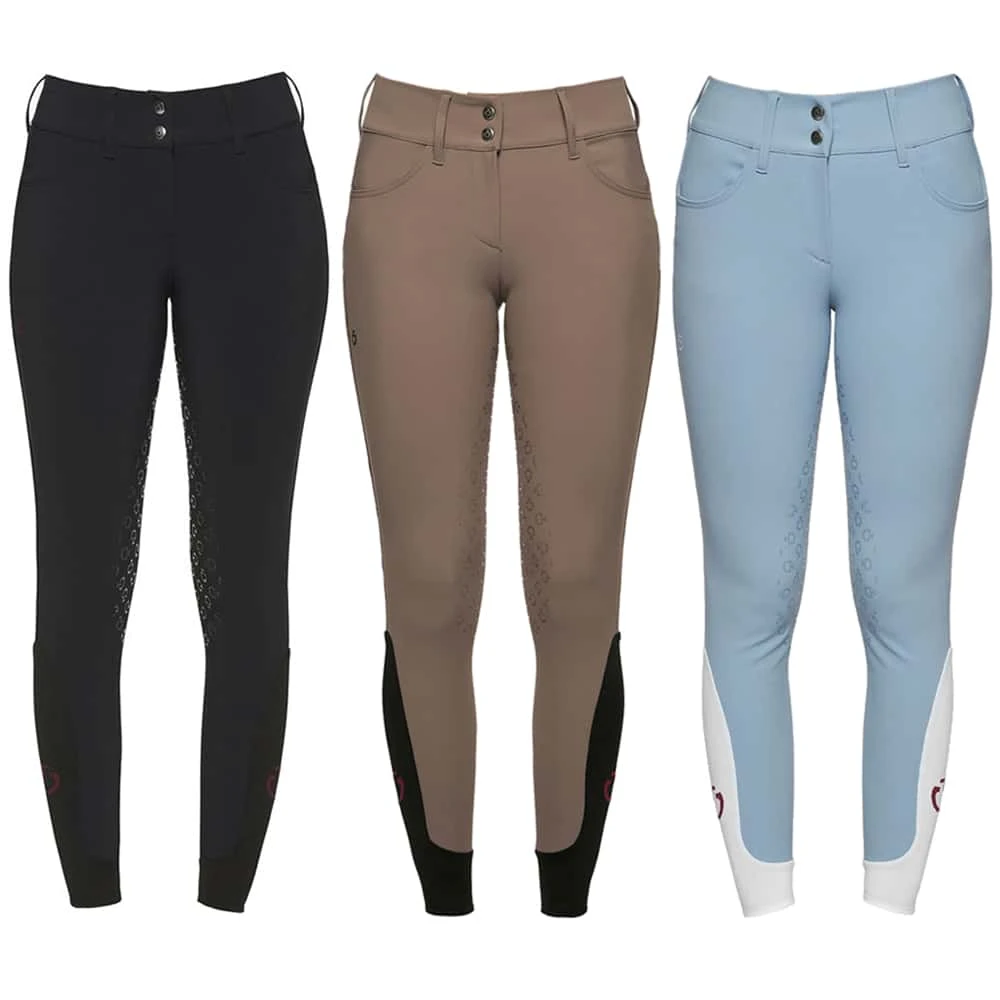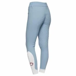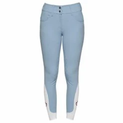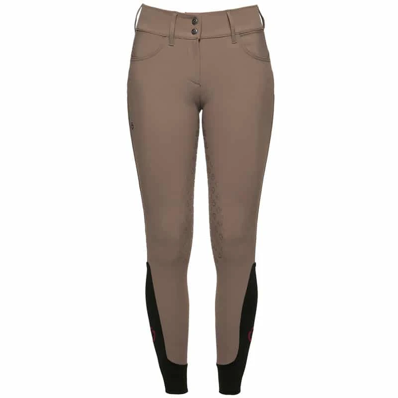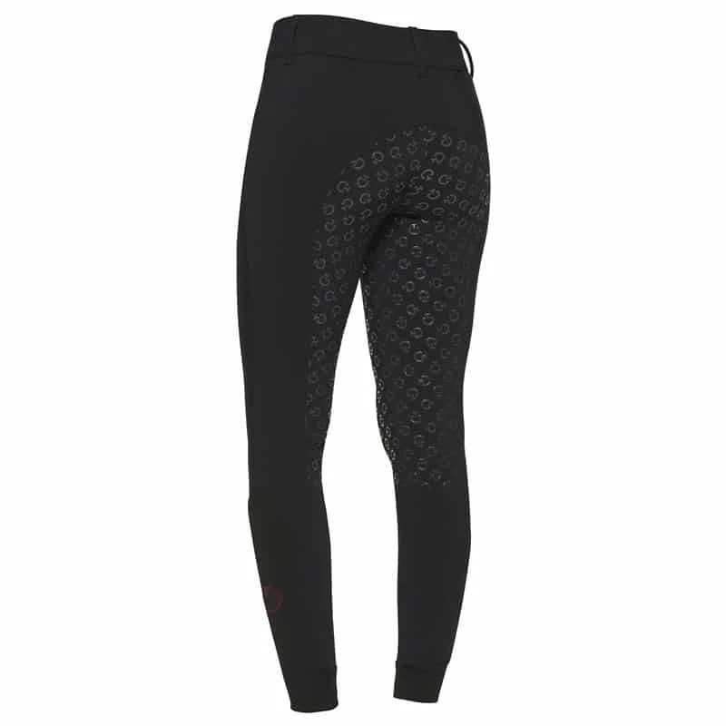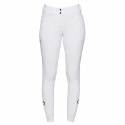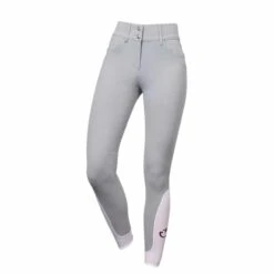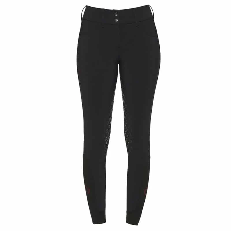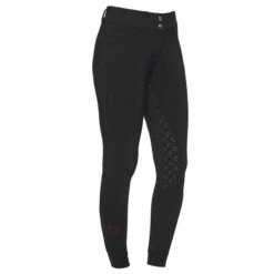 These are the fine ladies riding breeches model American from the brand Cavalleria Toscana. The beautiful riding breeches are made of the classic CT pique structure with technical fibers. This structure provides breathable, quick-drying, and elastic properties. This gives the horse American Full Grip Jersey riding breeches from Cavalleria Toscana a nice fit and a comfortable feel. The elegant breeches have a full-grip silicone seat, elastic leg closures, and two side pockets on the front. The American riding breeches have a high waistband. A silicone band has been incorporated in the inside at the top of the waistband, in order to hold the band in the right place. This material also protects against UV radiation. This ensures that the Cavalleria Toscana riding breeches provide a cooling effect.