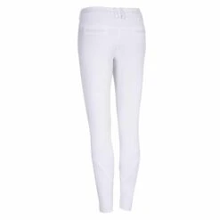These elegantly tailored Samshield Diane breeches feature a full seat silicone grip and two zipped front pockets. Samshield breeches are made of reinforced stretch fabric, which has a compression effect, making them very comfortable and flattering. This fabric is also very breathable and has undergone moisture control and UV protection treatment, making them perfect for hotter days. A very innovative silicone grip strip on the inside of the waistband will prevent shirts from rising. These breeches are, like the Adele breeches, gorgeously embellished with the Samshield logo on the thigh, which is finished in Swarovski crystals. The back is decorated with pockets with Swarovski Crystal fabric details and horizontal pleats along the waistband.