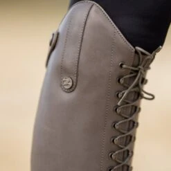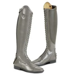 The Busse Laval model is a riding boot that is characterized by the high lacing at the front. The riding boots Busse Laval Grey are made of very beautiful European cow leather. The high lace at the front can be replaced for a different color (sold separately) and with this lace the width of the calf can be adjusted. At the bottom of the zipper at the back, there is a YKK zipper protector that protects the zipper against dirt and moisture. An elastic insert runs along the zipper that ensures a comfortable and optimal fit. These long riding boots have a dressage bow of 7 cm high.