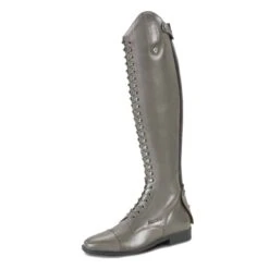The Busse Laval model is a riding boot that is characterized by the high lacing at the front. The riding boots Busse Laval Grey are made of very beautiful European cow leather. The high lace at the front can be replaced for a different color (sold separately) and with this lace the width of the calf can be adjusted. At the bottom of the zipper at the back, there is a YKK zipper protector that protects the zipper against dirt and moisture. An elastic insert runs along the zipper that ensures a comfortable and optimal fit. These long riding boots have a dressage bow of 7 cm high.