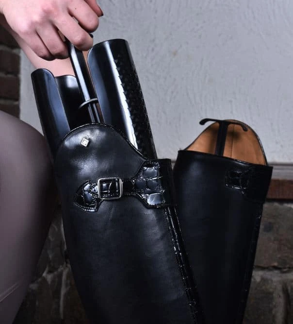 To make sure that the leather of your De Niro ridingboots stays in the right shape we advise to keep boot tensioners in your riding boots. The tensioners prevent your boots from folding. Before you use boot tensioners in your riding boots. Please make sure that your boots are dry. Humidity in your boots can cause mould to form, because the leather can not discard the moist when the boot tensioners are in place.