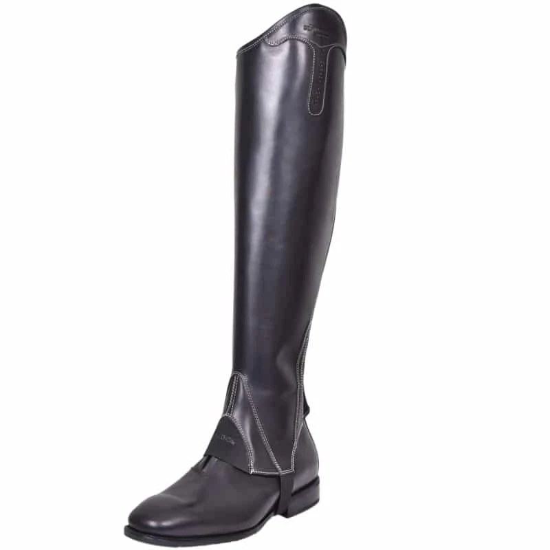 The DeNiro Ghitalia gaiters are made in black with white contrast stitching and have the DeNiro Ita top. This model has a zipper in the back lined with an elastic panel for optimal comfort and fit. The leather used for these gaiters is similar to the Tricolore Smooth leather. Therefore, these gaiters offer medium support, whilst having a silky smooth look. Combine these gaiters with the De Niro T107 Signature Adriano or the De Niro T-ITA Ludea short boots!