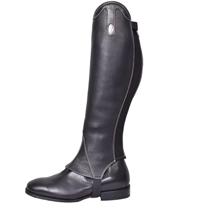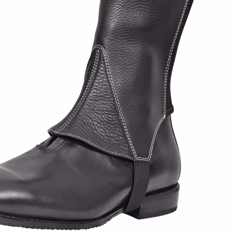 The Tricolore Ghapulaia Chicago gaiters are made in black with white contrast stitching and have the Ghapulia top. This model has a zipper in the back lined with an elastic panel for optimal comfort and fit. The Chicago leather used for these gaiters has the look of Tricolore Quick leather, whereas the feel is like the Tricolore Smooth leather. Therefore, these gaiters offer medium to high support, whilst having a high-quality pebbled look. These gaiters are completely natural and haven’t undergone any treatment. Combine these gaiters with the De Niro T107 Signature Adriano or the De Niro T-ITA Ludea short boots!