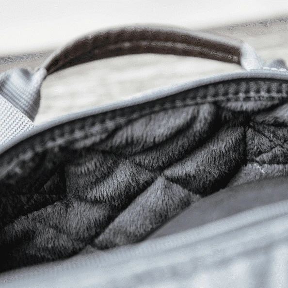This classy Helmet Bag allows you to store, protect and take your helmet wherever you want. Thanks to the front pocket, you can also store smaller items such as gloves. The helmet bag matches all the Kentucky travel products, so you can travel in style. The outside of the helmet bag is made from chic quilted Kentucky fabric. The inside of the bag is lined with artificial rabbit skin that protects your helmet against scratches. Next to protection, the artificial rabbit skin also serves as a shock absorber. The carrying handles are finished with artificial leather, for comfortable transport. The helmet bag is made to store all kinds and sizes of riding helmets. The bag is closed with a strong zipper and the front pocket is closed by press-studs. The front pocket allows you to easily store hair accessories, gloves, a phone, or keys. The dimensions of the helmet bag are 37 cm x 26 cm x 28 cm (L x H x W). The bag is machine washable at 30 degrees. Do not tumble dry afterward.