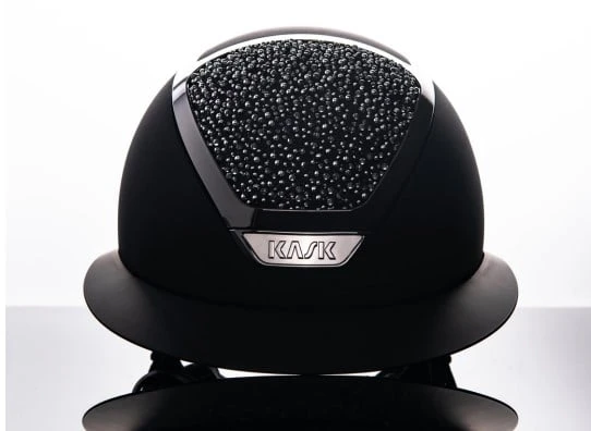 Designed and completely made in Italy, the Starlady model by Kask perfectly combines style, design, and functionality. Its elegant shape and unique technological details guarantee comfort, safety, and high performance to the rider. The molded outer shell, in ABS, is very resistant and light. It’s covered with a special textile material that is waterproof, scratch-resistant, and washable. Additionally, the soft eco-leather chinstrap is hypoallergenic, washable, and helps to avoid irritations of the skin. It adds a touch of style to this model, which will be much appreciated by the most demanding riders for its fit and design. The comfortable and breathable inner padding is made of 100% Merino Wool: a natural antibacterial fiber that provides unique levels of breathability and thermoregulation. The inner shell is made with expanded polystyrene and features three levels of densities in order to ensure total shock protection, comfort, and lightness. With two honeycomb-like aeration grids built in the polystyrene, a smart ventilation system in the helmet provides high volumes of cooling airflow, adding extra comfort to the rider. KASK is well aware that the helmet has to fit correctly to the rider’s head so that the best safety level is guaranteed. This is the reason why KASK helmets are provided with KASK’s patented self-adapting adjusting system in a carbon look. Introduced for the first time in the equestrian market, the FIT System allows the helmet to perfectly and automatically fit on the rider’s head by gently cradling the back of the head. The difference between the Kask Dogma model and the Kask Starlady model, is that the Dogma model has a standard (narrow) visor, and the Starlady model has a wide visor.
