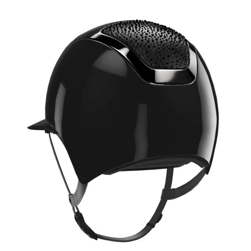 Designed and completely made in Italy, the Starlady model by Kask perfectly combines style, design, and functionality. Its elegant shape and unique technological details guarantee comfort, safety, and high performance to the rider. The molded outer shell, in ABS, is very resistant and light. It’s covered with a special textile material that is waterproof, scratch-resistant, and washable. Additionally, the soft eco-leather chinstrap is hypoallergenic, washable, and helps to avoid irritations of the skin. It adds a touch of style to this model, which will be much appreciated by the most demanding riders for its fit and design. The comfortable and breathable inner padding is made of 100% Merino Wool: a natural antibacterial fiber that provides unique levels of breathability and thermoregulation. The inner shell is made with expanded polystyrene and features three levels of densities in order to ensure total shock protection, comfort, and lightness. With two honeycomb-like aeration grids built in the polystyrene, a smart ventilation system in the helmet provides high volumes of cooling airflow, adding extra comfort to the rider. KASK is well aware that the helmet has to fit correctly to the rider’s head so that the best safety level is guaranteed. This is the reason why KASK helmets are provided with KASK’s patented self-adapting adjusting system in a carbon look. Introduced for the first time in the equestrian market, the FIT System allows the helmet to perfectly and automatically fit on the rider’s head by gently cradling the back of the head. The difference between the Kask Dogma model and the Kask Starlady model, is that the Dogma model has a standard (narrow) visor, and the Starlady model has a wide visor.