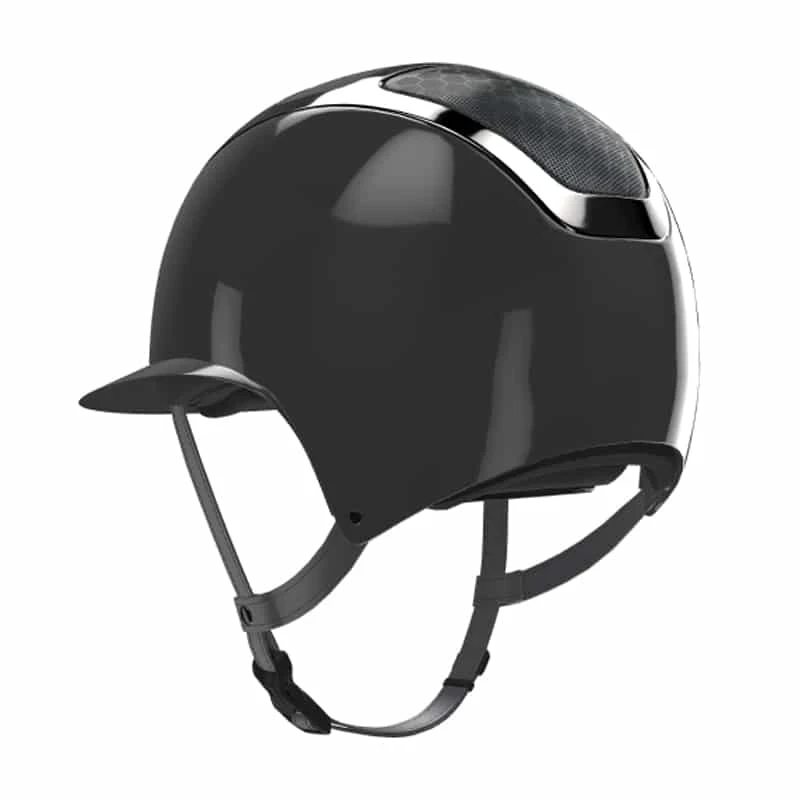 Designed and completely made in Italy, the Starlady model by Kask perfectly combines style, design, and functionality. Its elegant shape and unique technological details guarantee comfort, safety, and high performance to the rider. The molded outer shell, in ABS, is very resistant and light. It’s covered with a special textile material that is waterproof, scratch-resistant, and washable. Additionally, the soft eco-leather chinstrap is hypoallergenic, washable, and helps to avoid irritations of the skin. It adds a touch of style to this model, which will be much appreciated by the most demanding riders for its fit and design. The comfortable and breathable inner padding is made of 100% Merino Wool: a natural antibacterial fiber that provides unique levels of breathability and thermoregulation. The inner shell is made with expanded polystyrene and features three levels of densities in order to ensure total shock protection, comfort, and lightness. With two honeycomb-like aeration grids built in the polystyrene, a smart ventilation system in the helmet provides high volumes of cooling airflow, adding extra comfort to the rider. KASK is well aware that the helmet has to fit correctly to the rider’s head so that the best safety level is guaranteed. This is the reason why KASK helmets are provided with KASK’s patented self-adapting adjusting system in a carbon look. Introduced for the first time in the equestrian market, the FIT System allows the helmet to perfectly and automatically fit on the rider’s head by gently cradling the back of the head. The difference between the Kask Dogma model and the Kask Starlady model, is that the Dogma model has a standard (narrow) visor, and the Starlady model has a wide visor.