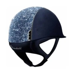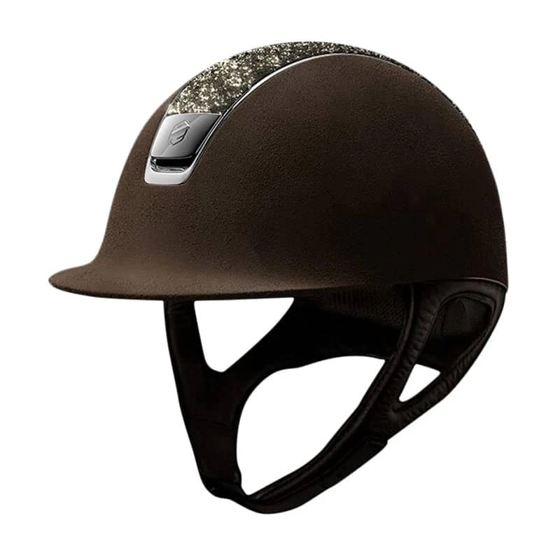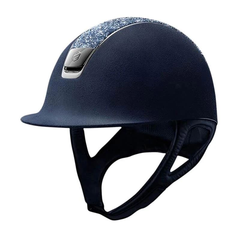 This wonderful Samshield Alcantara Medley helmet is made with the shell in Alcantara suede leatherlook material. The top is made in Crystal Medley Swarovski material. The trim and logo are made in chrome silver.