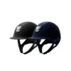 This streamlined Samshield helmet with Alcantara suede shell is a modern masterpiece. The top of this helmet features a stunning shimmer design. With this model, the black and blue navy versions have silver chrome blazon and trim, whereas the brown version has a gold chrome blazon and trim.