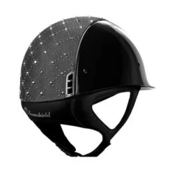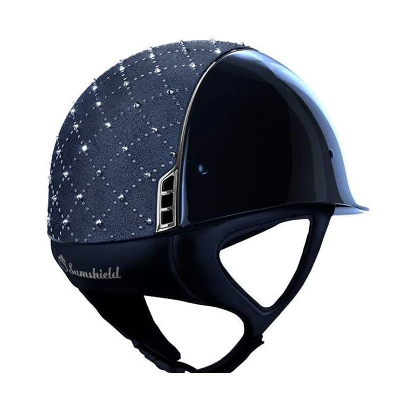 This wonderful Samshield Glossy Lozenge helmet is made with the shell in Glossy material. The top of this helmet is made in Alcantara suede leatherlook material, with the Lozenge design of Swarovski elements. The trim and logo are made in chrome silver.