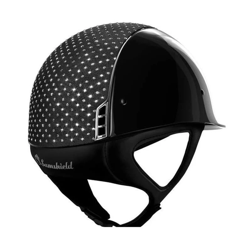 This gorgeous Samshield Glossy helmet with Sparkling top is a perfect addition to your riding outfit. The top of this helmet is made in Alcantara suede decorated with a stunning design of silver Swarovski crystals. The chrome silver trim and blazon give this helmet a classy finish.