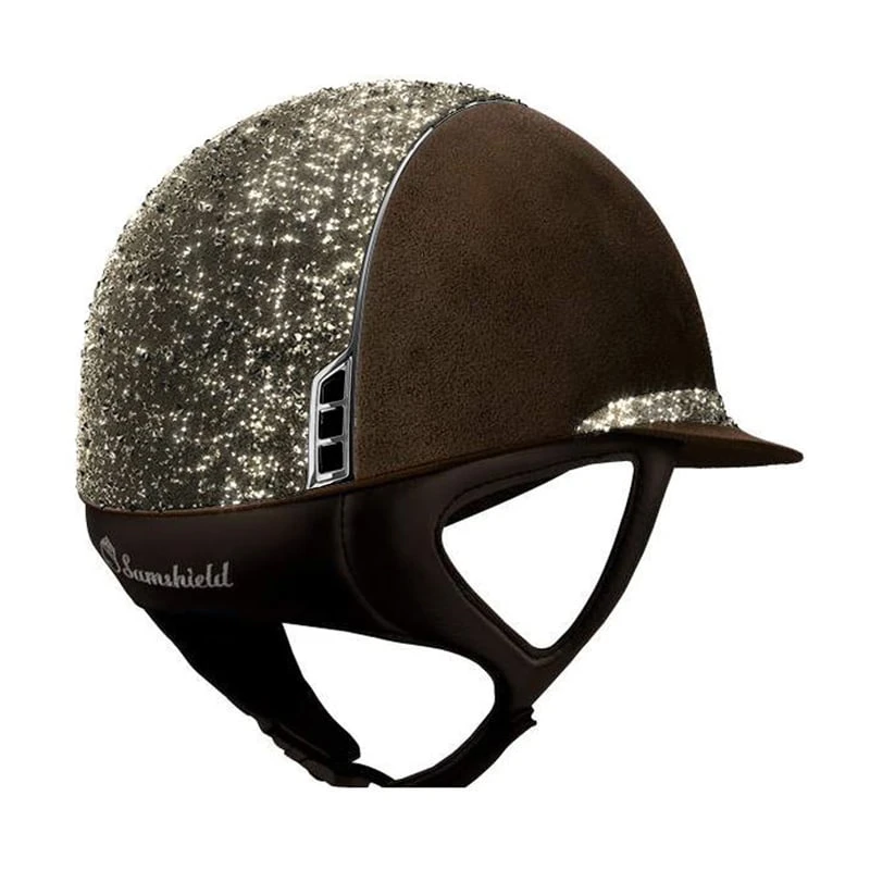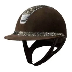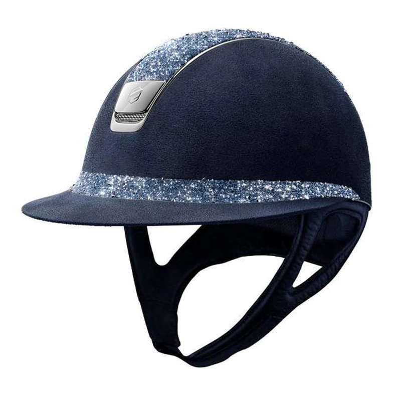 This wonderful Samshield Miss Shield Alcantara Medley helmet is made with the shell in Alcantara Suede leatherlook material. The Miss Shield model has a wide visor with a decorative band. The top and band on this helmet are both made in Crystal Medley Swarovski material. The trim and logo are made in chrome silver.