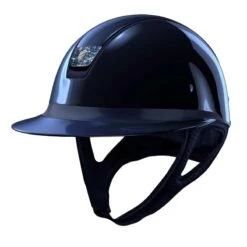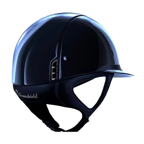 This modern Samshield Miss shield helmet has a glossy shell for an everlasting polished look. The Miss Shield model has an extra-wide visor, to protect from bright sunlight. The helmet is finished with matte details on the band along the visor, and trim, and features a Christal fabric blazon.