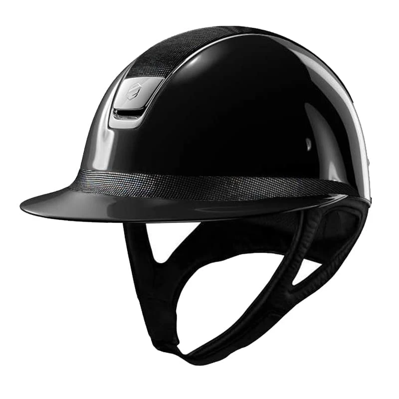 This modern Samshield Miss shield helmet has a glossy shell for an everlasting polished look. The Miss Shield model has an extra-wide visor, to protect from bright sunlight. The helmet features the Samshield Shimmer top and band along the visor. The chrome silver and blazon and trim, make a modern look.