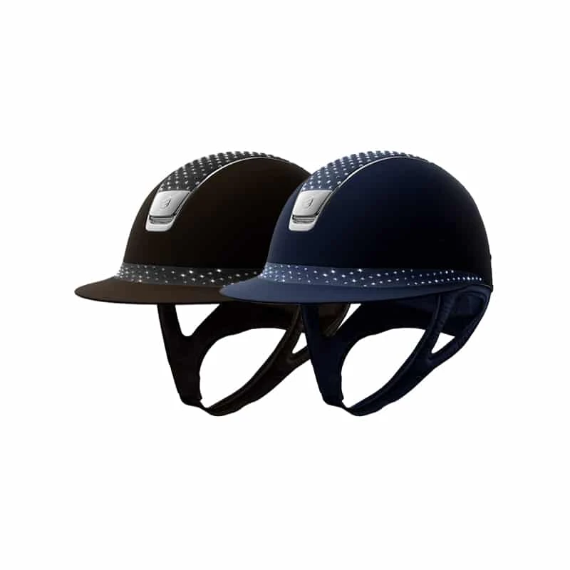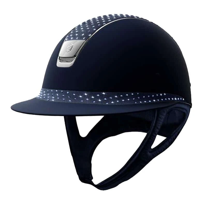 This sparkling Samshield Miss shield shadowmatt is gorgeously embellished with Swarovski crystals on the top and band along with the wide visor. This helmet is finished with a chrome silver blazon and trim, to give this helmet a classic look.