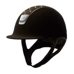 This Samshield shadowmatt helmet with lozenge top is a gorgeous eyecatcher. The lozenge patern is laid with swarovski crystals. The all-over matte shell and chrome silver trim and blazon give the helmet a classy finish. This helmet will make you sparkle.