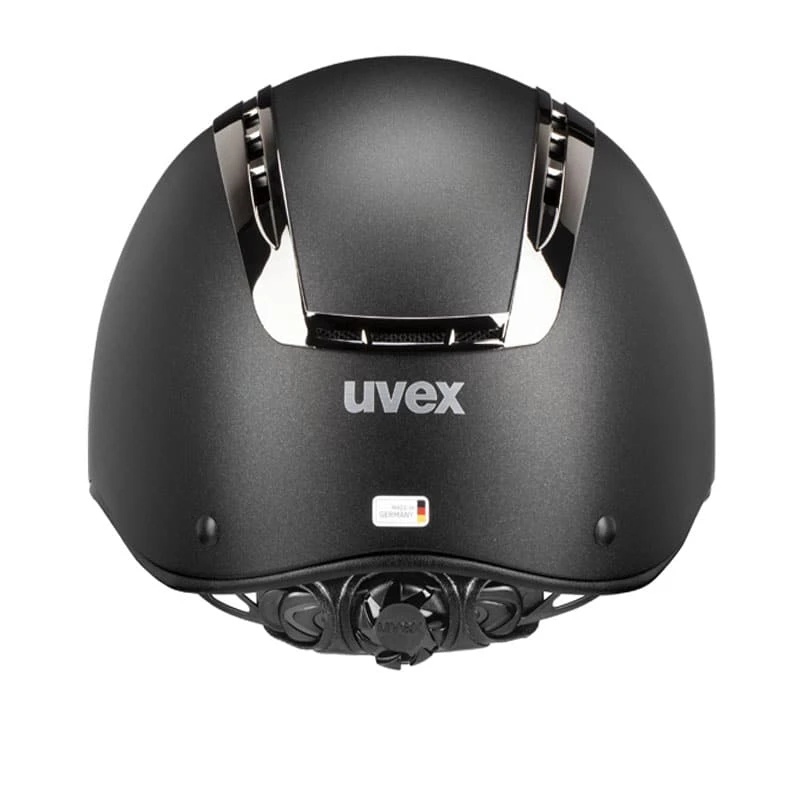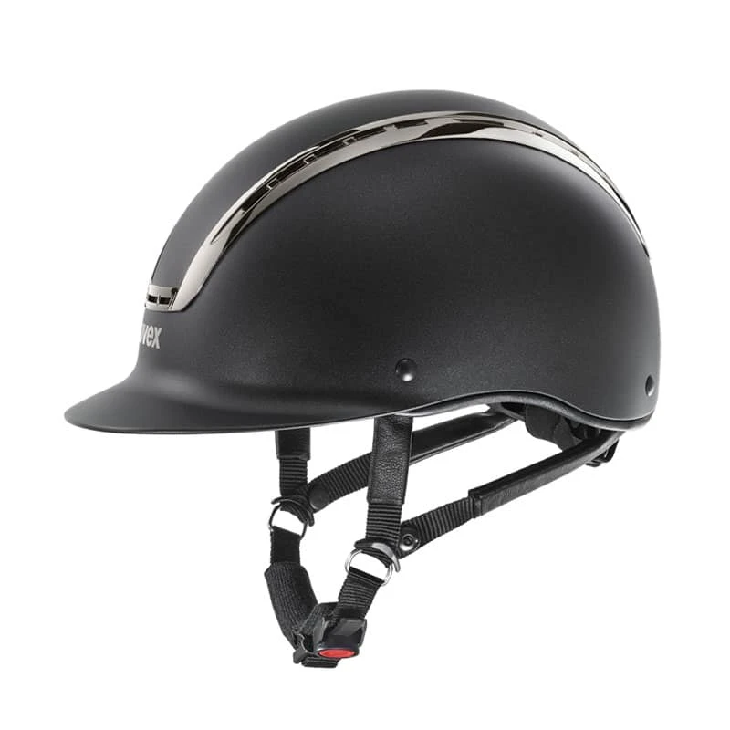 Dressage, eventing, jumping, or just for fun. The Uvex riding helmet collection guarantees the perfect combination of style and safety. For every rider. For every discipline. With high-quality materials, appealing designs, optimal fit, and ultimate comfort. Uvex helmets are made to meet all your equestrian needs. All Uvex riding helmets feature soft, washable pads that ensure optimal size adjustment and superior comfort at all times. Any helmet can be perfectly adjusted to each head using the Uvex IAS 3D system. Loosen the system entirely and put the helmet on. Turn the dial at the back to tighten the ring and thus the width. The Uvex IAS 3D system should make contact with the head where you naturally have a curve at the back of the head. The height can also be adjusted, with the easy-to-use ratchet closure. Identify the appropriate height using two fingers. Check the fit: even with the chin strap open, the helmet should have a secure fit. The Uvex IAS 3D system can be adjusted to improve the position of the strap joint. The length of the chin strap can be adjusted as well. The Uvex Monomatic comfort closure must be fully inserted until the final click. Two fingers should fit between the chin and strap.