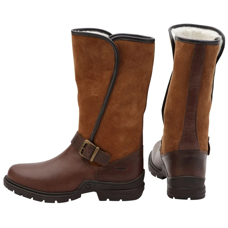 The Horka Chesterfield outdoor boots are ideal for cold and rainy days. The Chesterfield boots keep your feet warm and dry. The boots are made of leather and nubuck. The boots have a faux fur lining. The boot is waterproof due to the membrane that sits between the lining and the outer leather. The sole is made of TPR anti-slip rubber.