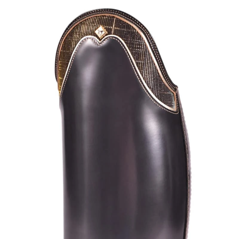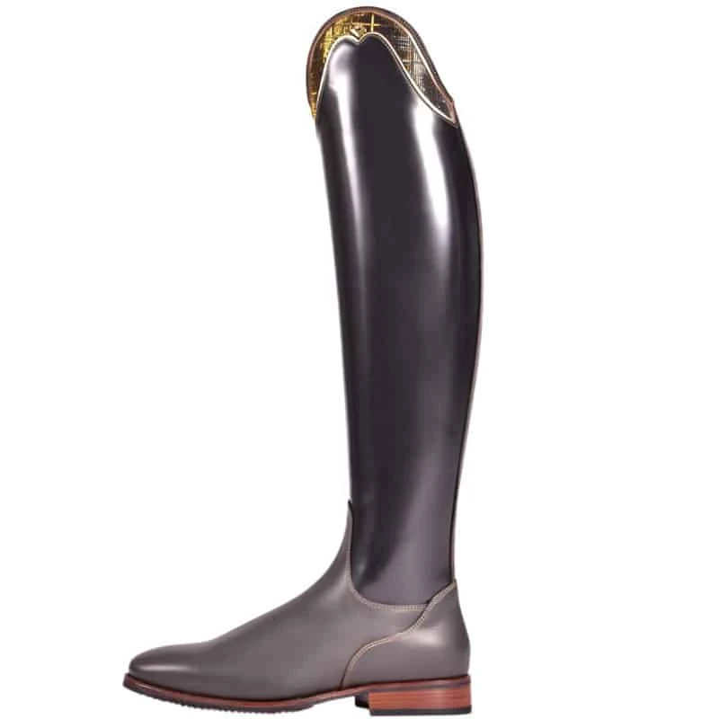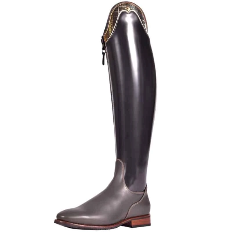 These boots are (partly) made in Brushed leather. Because this leather is more susceptible to damage, this leather can become dull when worn frequently or when handled carelessly. The De Niro factory can repair some damage, but please mind that on Brushed leather boots the warranty can be somewhat less extensive. De Niro advises riders to use boots with Brushed leather for competitions and clinics only.