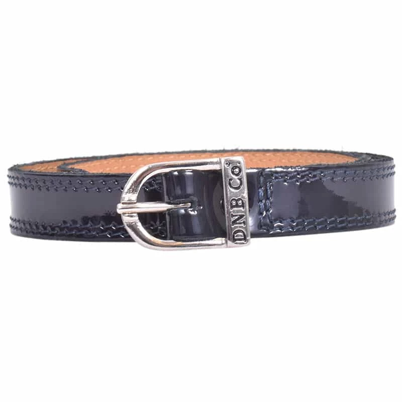 These spurstraps are made in Shiny Patent leather. The spurstraps have a silvercoloured buckle wiht the letters DNB Co on it. De Niro spurstraps are available in several diffent types of leather and in several different colours.