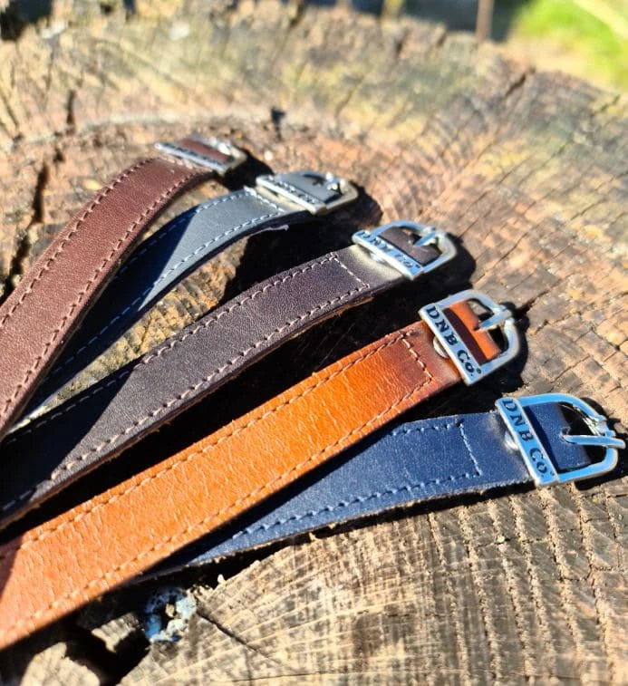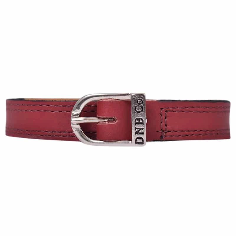 These spurstraps are made in standard WRAT leather. The spurstraps have a silvercoloured buckle wiht the letters DNB Co on it. De Niro spurstraps are available in several diffent types of leather and in several different colours.