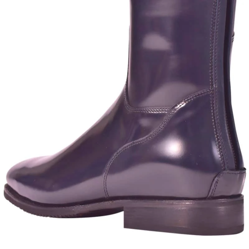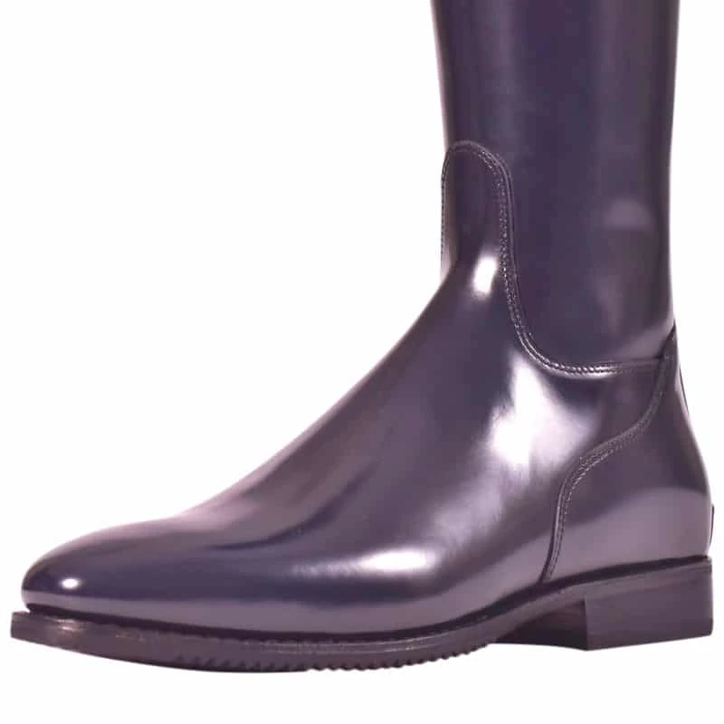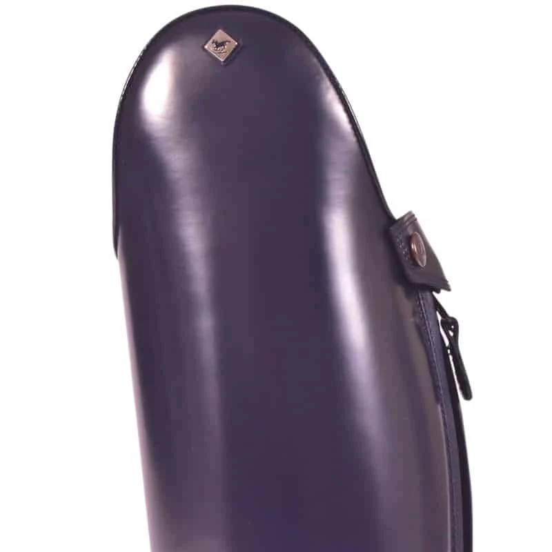 The beautiful Volta SL model is a dressage model by the brand De Niro Boot Co. The boots are handmade in Italy, by specialised craftsmen with years of experience. What’s particularly special about the Volta SL model boots is that they are a dressage model, but with a zipper at the back. Other De Niro Boot dressage models often have the zipper diagonally in the front of the boot. The zipper at the back makes it easier to put the boots on and take the boots off. This back zipper position also offers better durability, since the leather around the ankle will not fold, stretch, or damage as much as it may with stepping into a boot with the diagonal zipper in other dressage models like the Raffaello and Bellini model. Additionally, the zip cages are less likely to break since they are in a less vulnerable spot. The De Niro Volta SL boot features a beautiful high dressage arch of 10cm for calf sizes S and smaller. From calf size M and up, the dressage bow will be 8cm tall, which is the standard high dressage bow for other De Niro dressage models. Like any other De Niro model, the De Niro Volta SL dressage boots can be completely customized to meet your every wish.