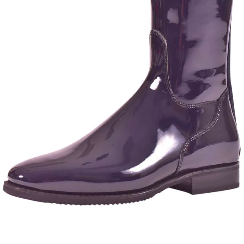 These boots are (partly) made in Patent leather. Because this leather is more susceptible to damage, this leather can become dull when worn frequently or when handled carelessly. The De Niro factory can repair some damage, but please mind that on Patent leather boots the warranty can be somewhat less extensive. De Niro advises riders to use boots with Patent leather for competitions and clinics only.