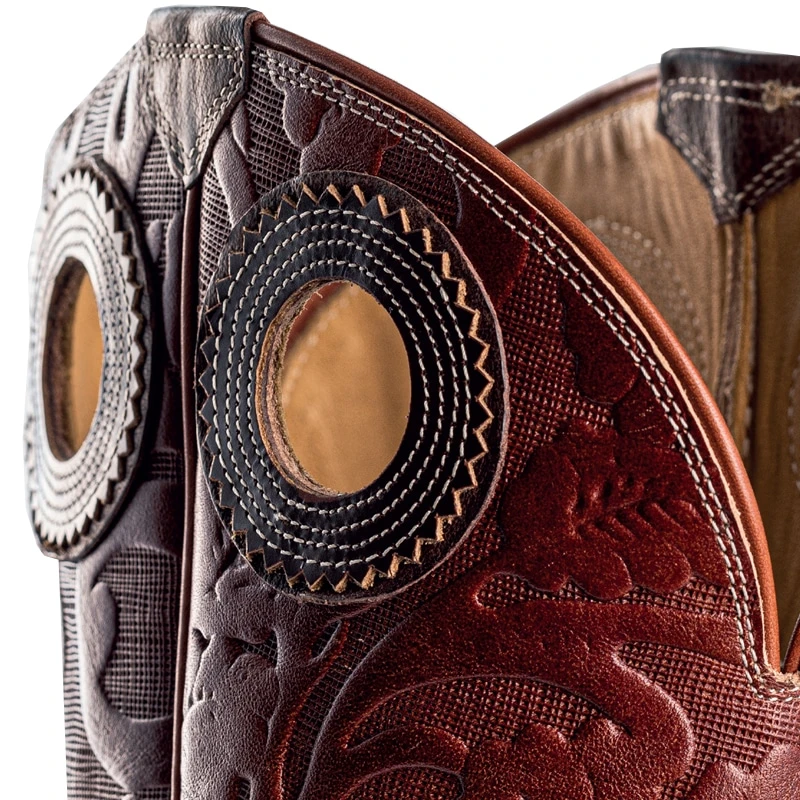 This outstanding Eagles Cowboy boot is a custom made Cutter boot. This model is of medium height and always features decorated pull holes and classic side welts.