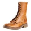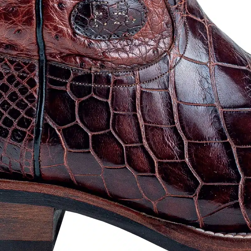 This striking Cutter Cowboy boot is a custom Buckaroo boot. This model has the color crocodile light radica in the foot and the heel. The leg part of the western boot is in the color ostrich almond. Details have been added in the boot that are in the color crocodile light radica. You can also add leather initials to this boot.