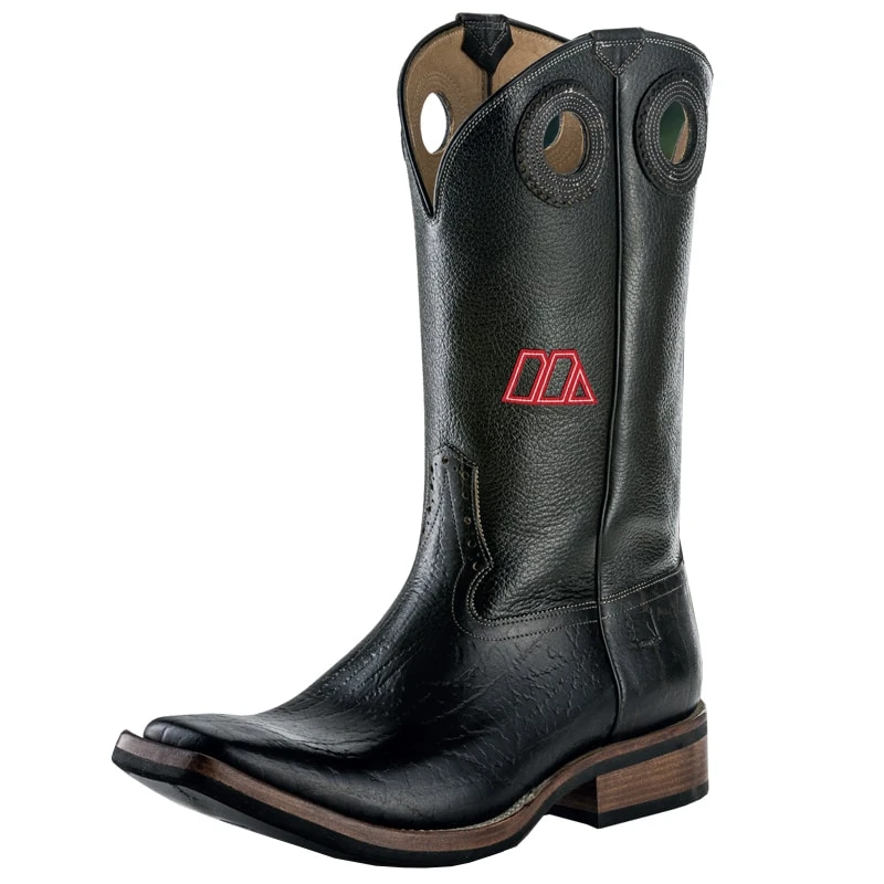 This outstanding Ruist Cowboy boot is a custom made Buckaroo boot. This model is the tallest model in our range and always features decorated pull holes and classic side welts. This particular boot has a wave top.