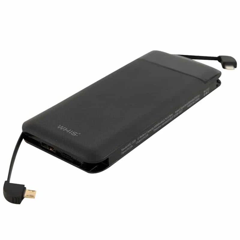 The Whis sets cannot be charged with the help of the power bank. This power bank is usable for your phone, tablet, etc. On the WHIS Power Bank Long Life, you can see exactly how many % the power bank still has left. You will be amazed by the many connections that this power bank has. Battery life: 5 to 8 hours.